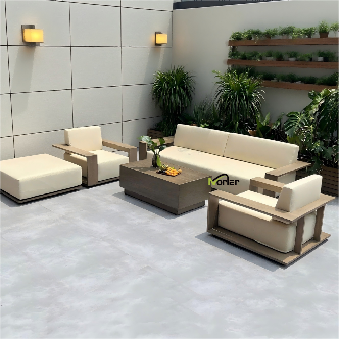 5. Teak Outdoor Sofa: Made from highly weather-resistant natural teak, this sofa boasts a fine grain, high stability, and develops a more luxurious feel with use, making it a classic choice for creating a high-end resort-style balcony.