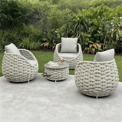 4.Rope Outdoor Sofa: The hand-braided rope design is visually light and breathable, and the aluminum frame adds a modern touch. Combining comfort and artistry, it's a popular choice for creating a sophisticated balcony.